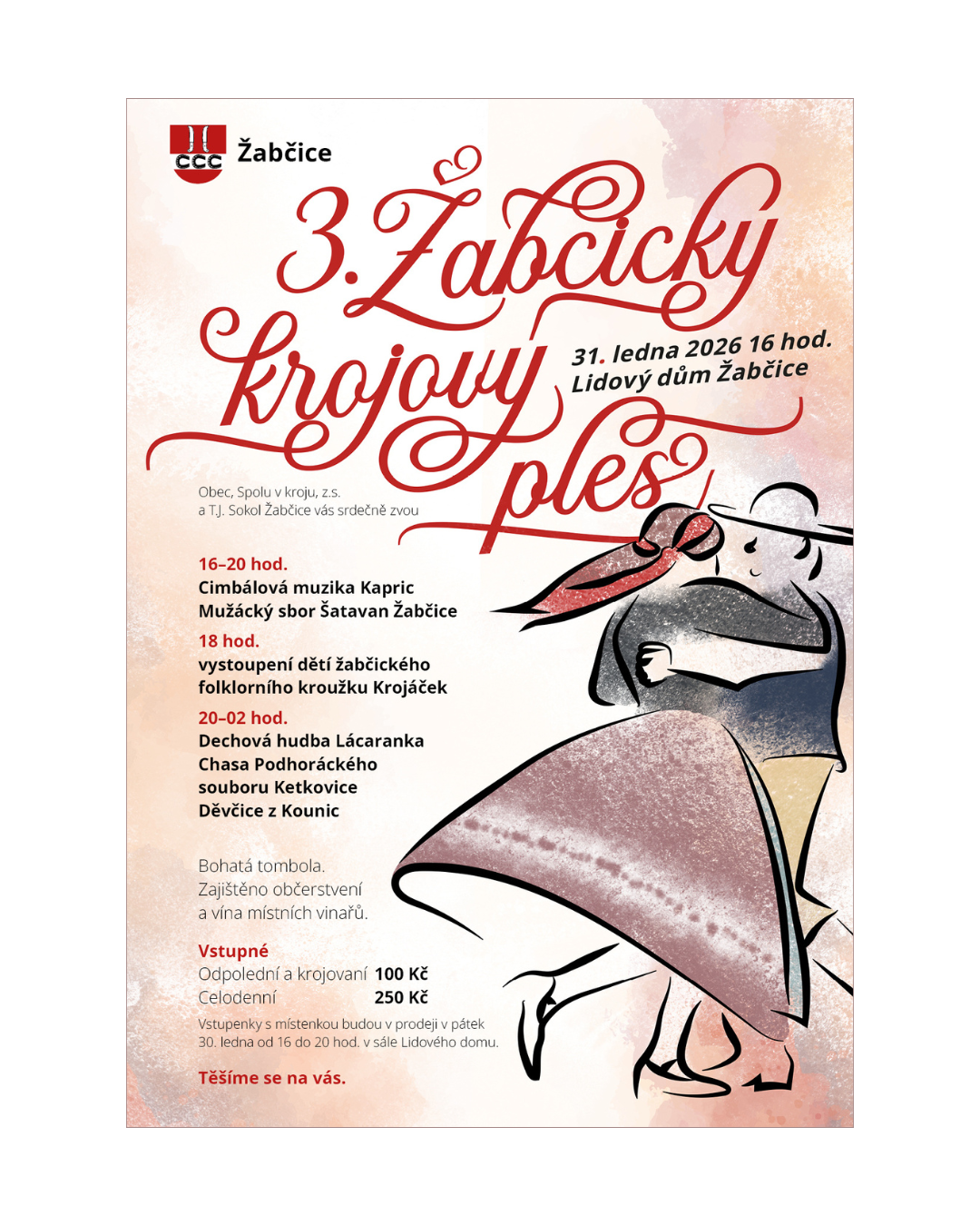 Srdečně vás zveme na třetí ročník Krojového plesu v Žabčicích.