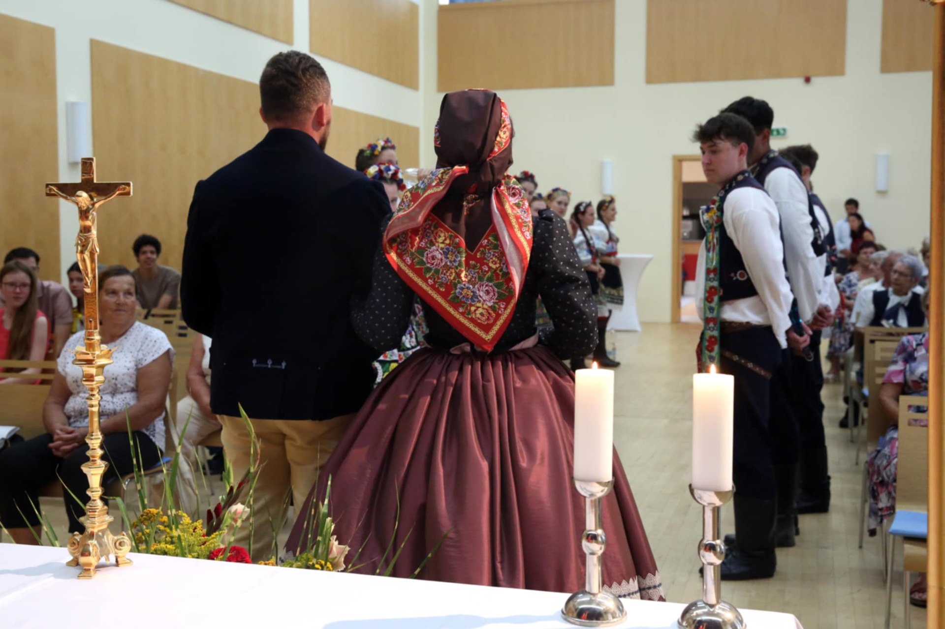 Obnova žabčického kroje není jen snahou o znovuoživení starých oděvních součástí. Je to především navázání na historii a identitu naší obce. Každý kus kroje vypráví příběh o tom, co lidé v minulosti považovali za krásné a slavnostní, jaké 5 vlivy do našeho regionu pronikaly a jak se postupně měnil vkus i životní styl našich předků. Dnešní podoba kroje proto stojí na pomezí minulosti a současnosti. Na jedné straně vychází z věrných zápisů v kronice a odborných konzultací s etnology, na straně druhé se přizpůsobuje možnostem a potřebám dnešní doby. Díky tomu se kroj nestává jen exponátem v muzeu, ale opět žije mezi námi. Objevuje se na hodech, slavnostních mších i dalších kulturních akcích, kde připomíná naše kořeny a zároveň spojuje lidi napříč generacemi. Obnovením kroje však práce nekončí – je to naopak začátek nové cesty. Chceme, aby se žabčický kroj rozšířil mezi více rodin, aby jej oblékali nejen mladí při hodech, ale i starší při dalších slavnostech a aby se stal přirozenou součástí našeho kulturního života. Proto vzniká spolek Spolu v kroju, jehož posláním je propojit generace a pečovat o lidové tradice v jejich nejširší podobě. Kromě samotného kroje se zaměří i na lidové tance, písně a zvyky, které k Žabčicím a jižní Moravě neodmyslitelně patří. Byli bychom rádi, kdyby se žabčický kroj nestal jen něčím dávno zapomenutým, ale aby znovu patřil k našim hodům, slavnostem i setkáním. Aby lidem dělal radost, připomínal odkud jsme a postupně si k němu našly cestu i naše děti.