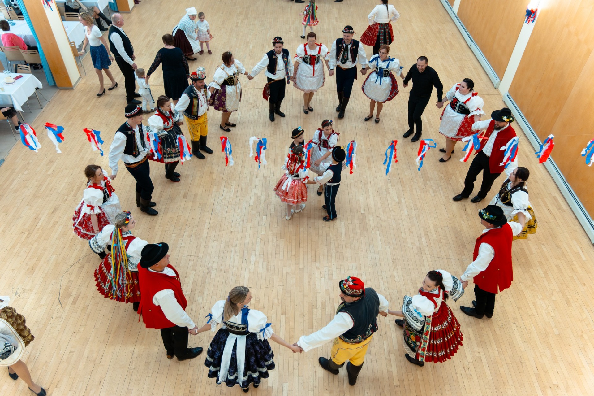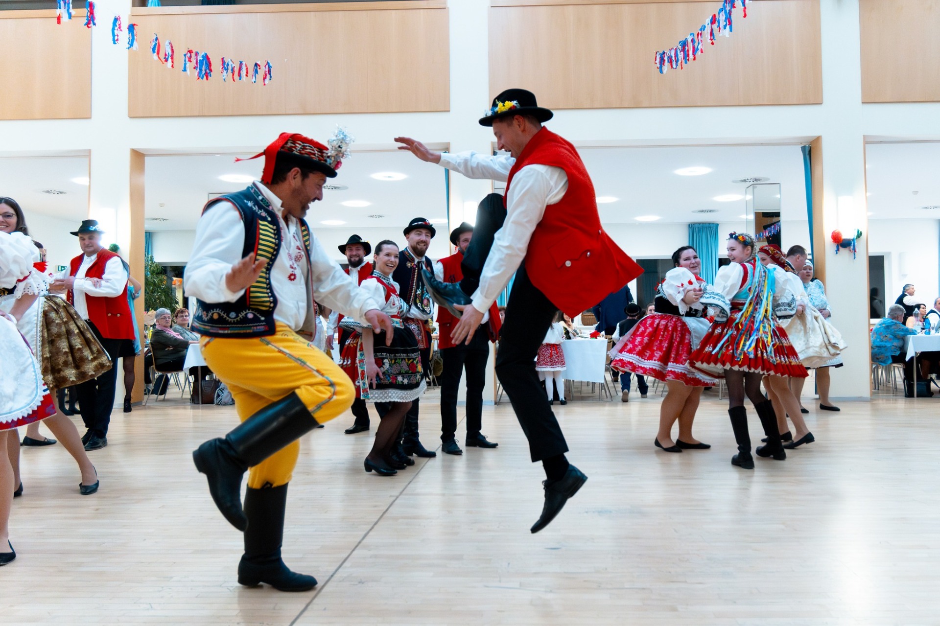 V našem programu dáváme prostor lidem a souborům, které patří ve svém oboru ke špičce. Na fotografii můžete vidět vysokoškolský folklorní soubor Poľana, který u nás vystoupil na prvním i druhém ročníku Krojového plesu. Svým vystoupením večer výrazně obohatil a zároveň účastníky přizval do "školy tance", která se přirozeně stala jedním z vrcholů celého programu.